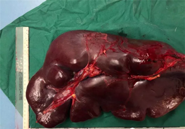 8月20日,在阜阳市二院肝胆外科的努力下,成功将赵某某体内体积达40厘米×26.5厘米×11厘米、重达4.4公斤,堪比“巨大胎儿”的巨脾切除。