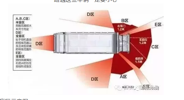 大车的盲区多、面积大,覆盖位置众多。无论是非机动车还是行人,一旦身处这些盲区内,司机很有可能注意不到你。
