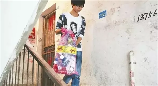 (吴宝同把捡来的饮料瓶送去卖)