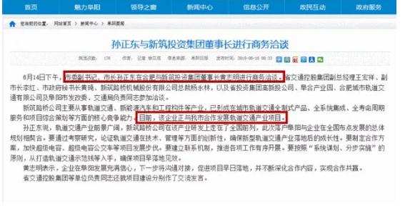 近日,阜阳轨道交通又爆出新进展!市委副书记、市长孙正东亲自出马在合肥与新筑投资集团进行商务洽谈。目前,该企业正与我市合作发展轨道交通产业项目,市长亲自对接新筑投资集团!阜阳人期待的轨道交通真来了!目前